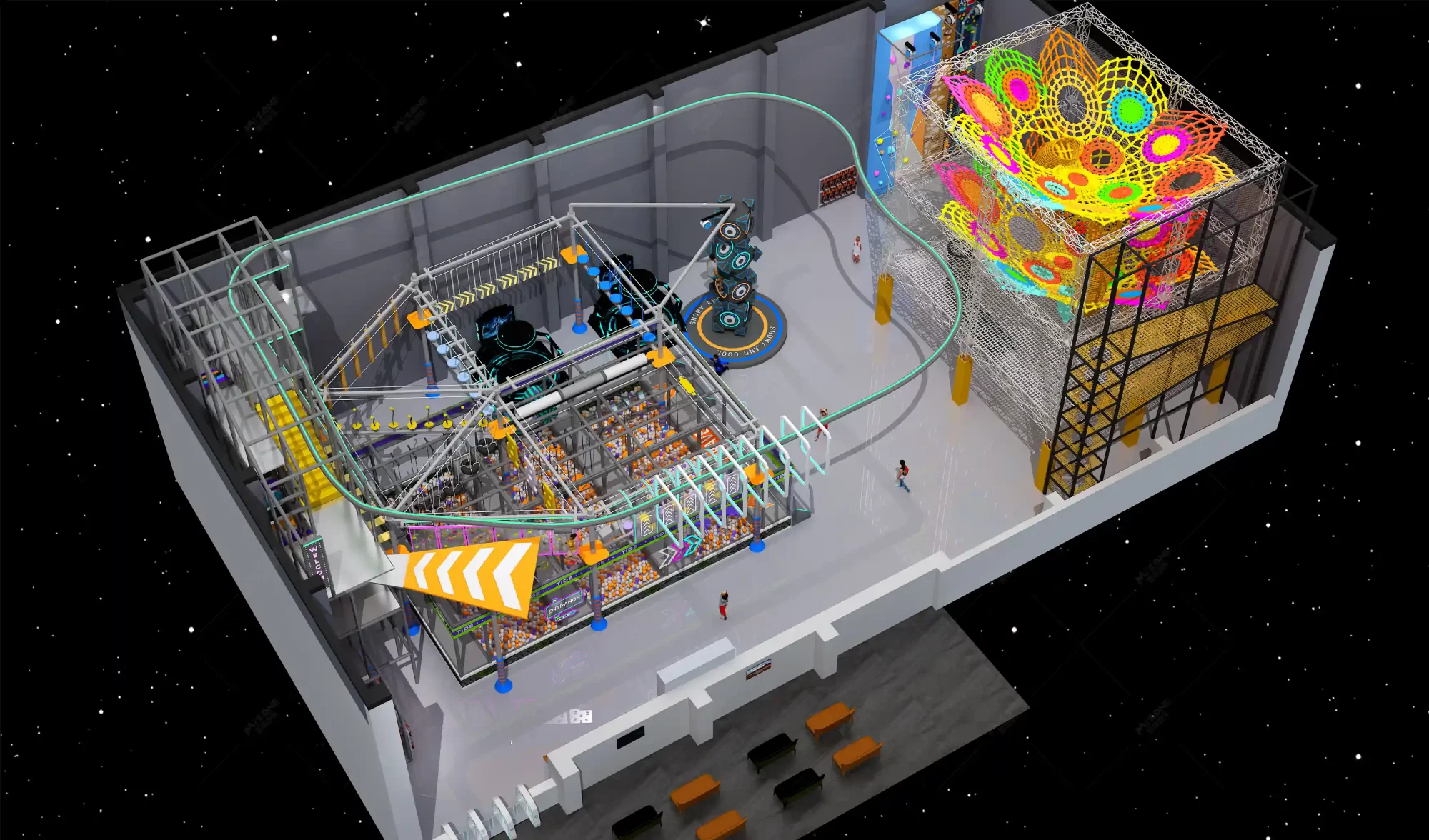 After multiple rounds of in-depth communication, we decided to fully leverage the advantages of this vertical space to create a comprehensive amusement park that integrates challenge, safety, and fun.