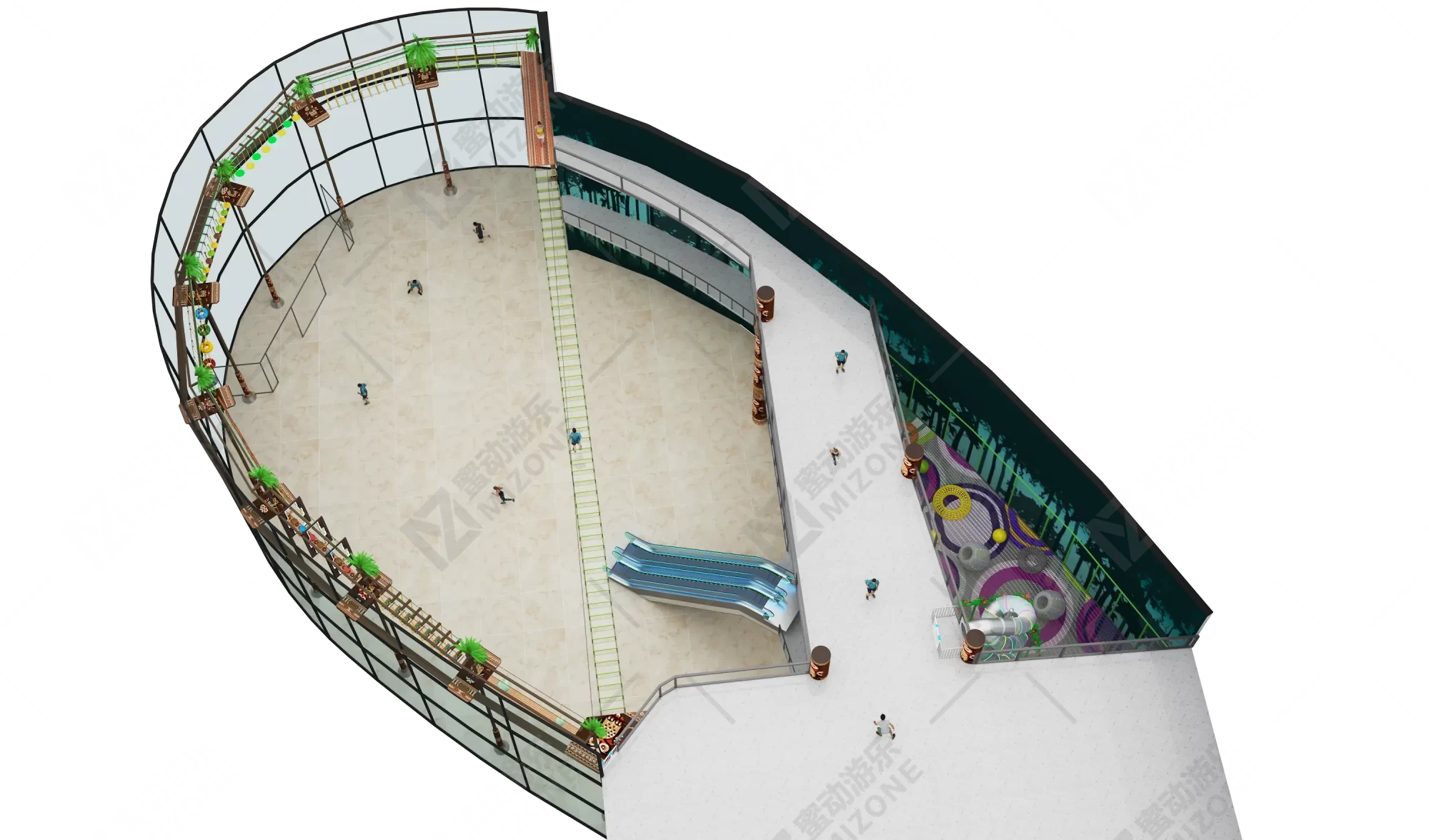2: Functional Areas: High-altitude expansion obstacle course area, high-altitude swing bridge area, high-altitude magic net area, high-rise stainless steel slide area.