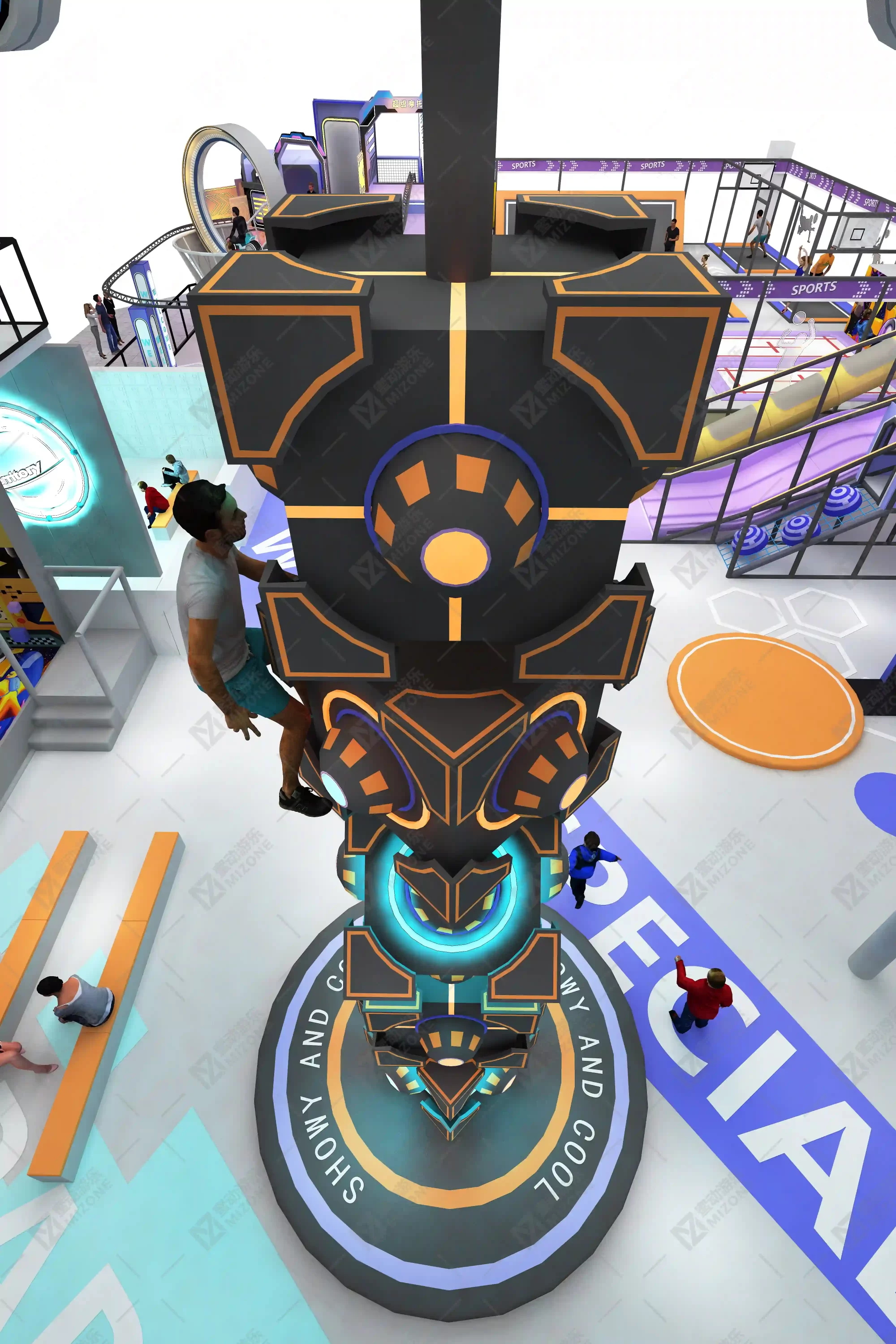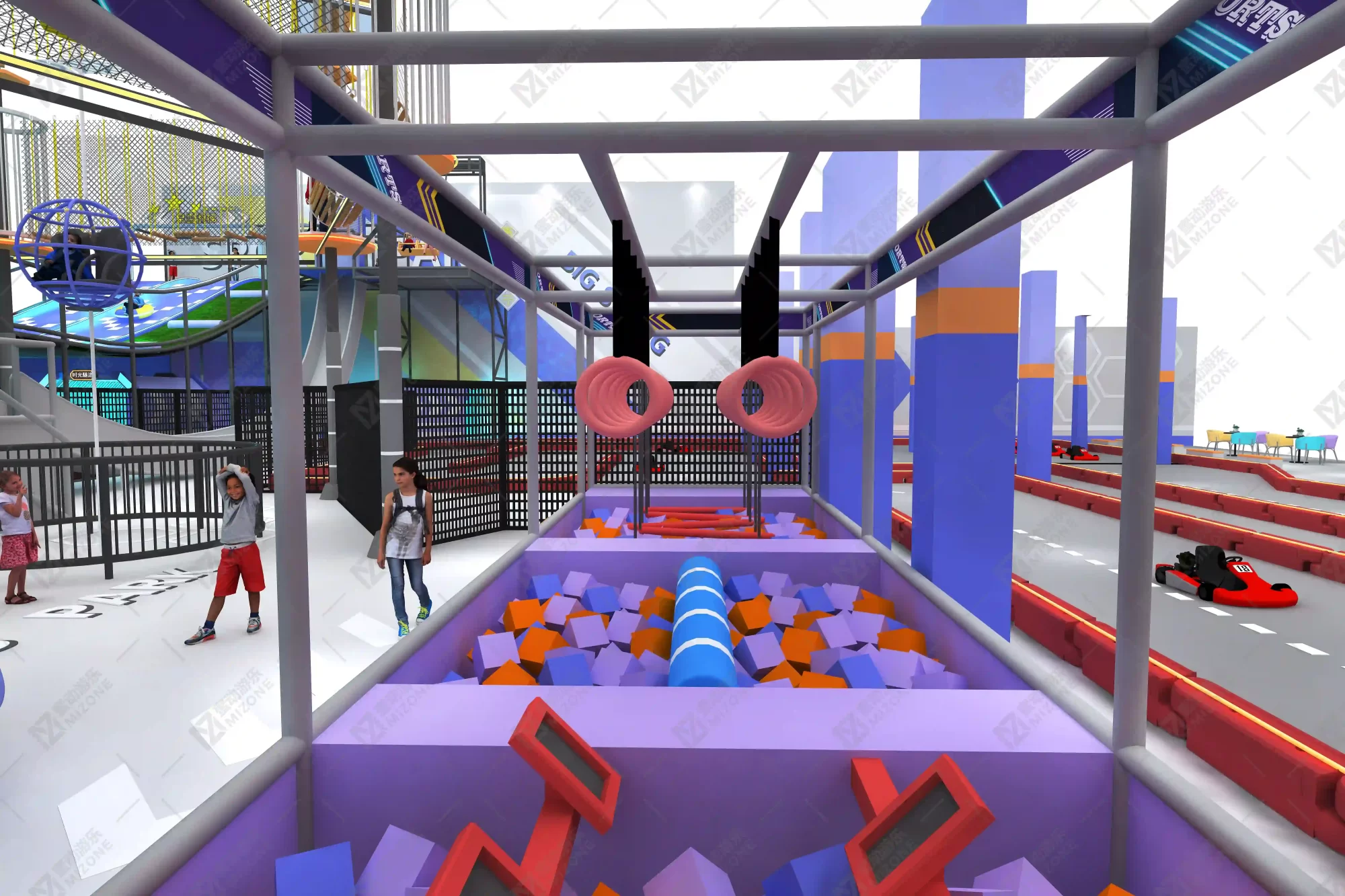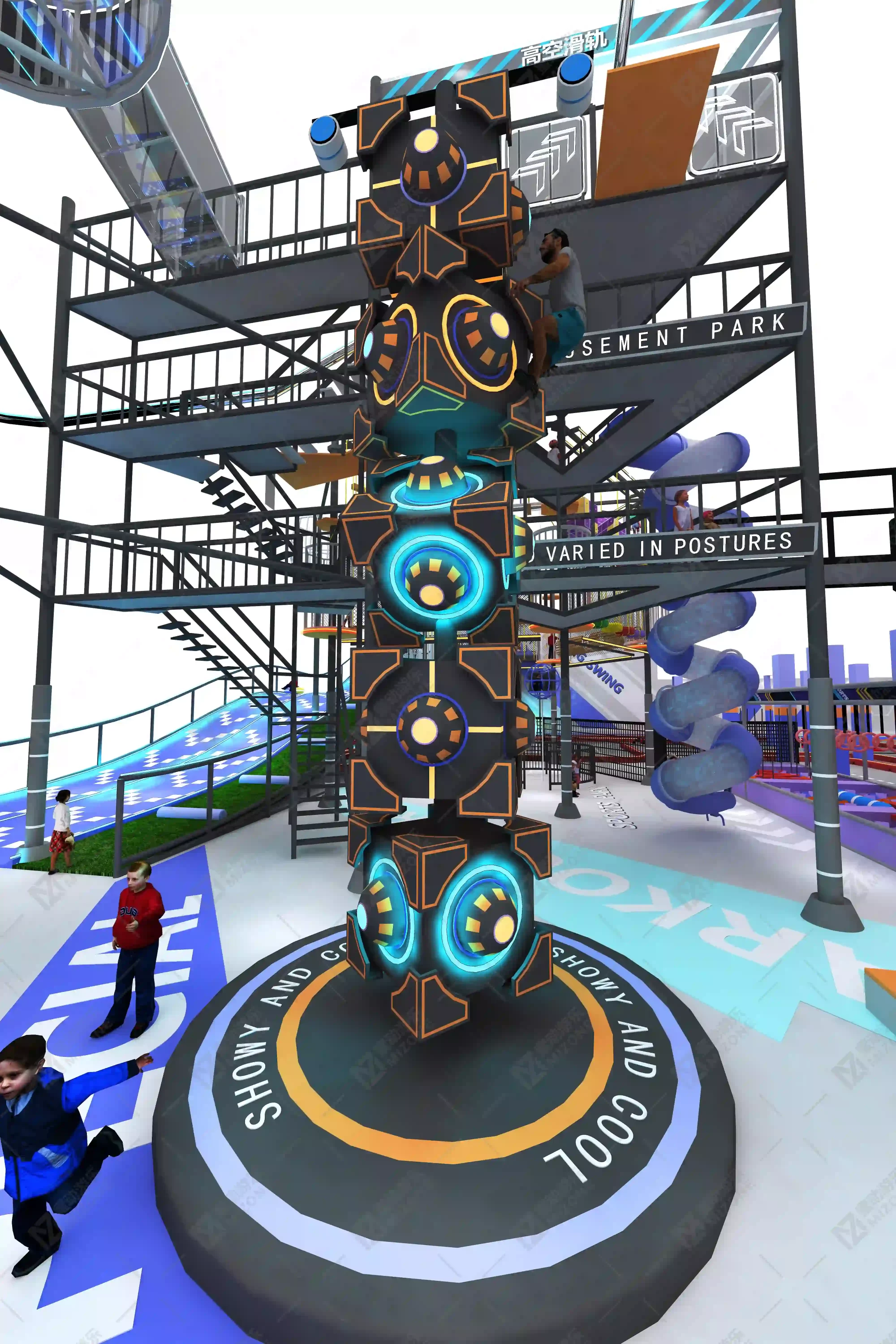 Step into a futuristic arena of adrenaline and wonder: conquer the Rubik’s Cube climb, soar on high-altitude courses, defy gravity with 360° bike leaps and aerial stunts, push limits on rainbow steps, bounce freely on trampolines, and race with passion on roaring kart tracks—every moment here thrills.